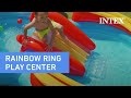 Transform your backyard into the favorite neighborhood hangout this summer with the Intex® Rainbow Ring Play Center. You will love the Slippery Water Slide, Raging Ring Toss Game, and all the Super Fun Ball Games included in this mini Water Park.